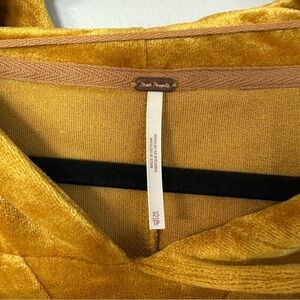Free People Women’s Gold Slouchy Velour V-Neck Hooded Pullover Sz XS GUC