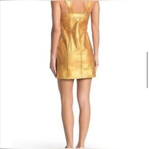 Free People Womens Goldie Metallic Leather Sweetheart Neckline Dress Size 2 Gold