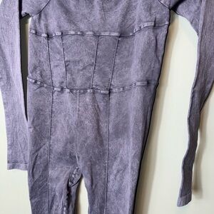 Free People Women’s Good Karma Corset Long Sleeve Onesie Blk Mineral Wash XS/S