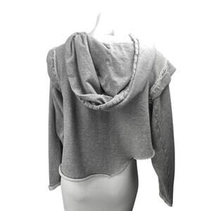Free People Women's Gray Distressed Long Sleeve Hooded Hoodie Crop Sweatshirt M