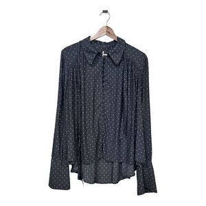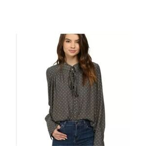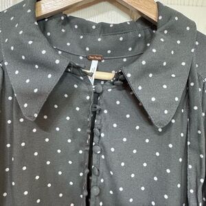 Free People Womens Gray Polka Dot Button Up Long Sleeve Blouse size medium
