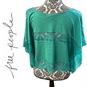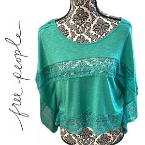 Free People Women’s Green Lace Trim Inset Bat Wing Sleeve Top