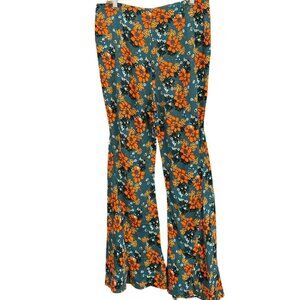 Free People Women's Green Orange Bohemian Bell Bottom Pants Medium Festival