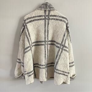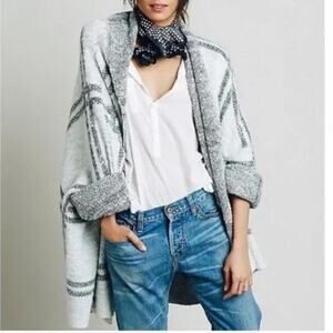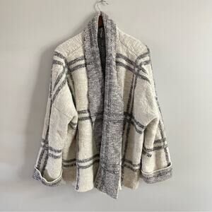 Free People | Women’s Grey & White Windowpane Plaid Oversized Wool Blend Cardigan