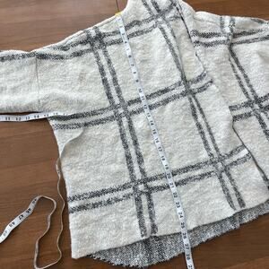 Free People | Womens Grey & White Windowpane Plaid Oversized Wool Blend Cardigan