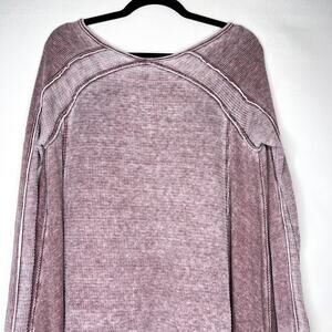 Free People Women’s Hankercheif V-neck Flowy Waffle Knit Top XS Maroon
