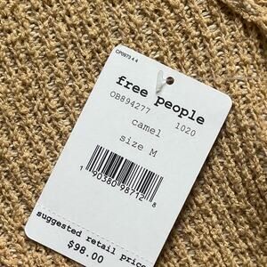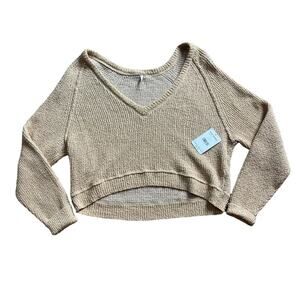 Free People Women's High Low V-Neck Cropped Sweater Camel Size Medium NWT