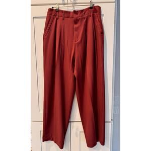 Free People Women's High Waist Pleated Waist Relaxed Trousers Earthy Rust Sz 6