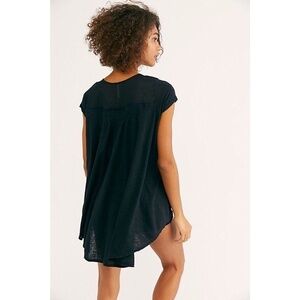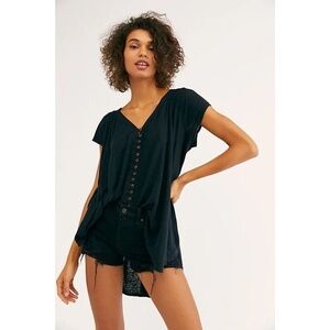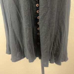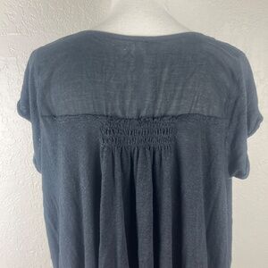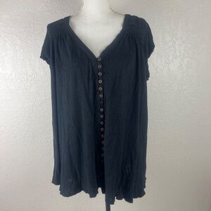 Free People Women’s Highland Linen Tunic Top Sz Large Button Up Hi-Low Black