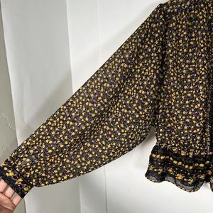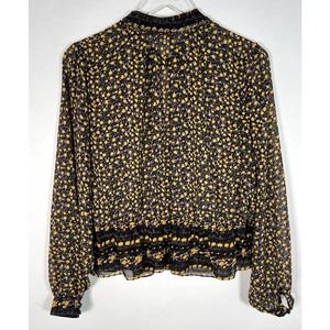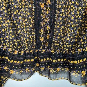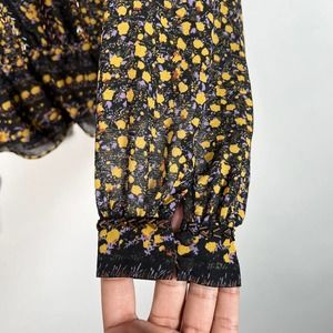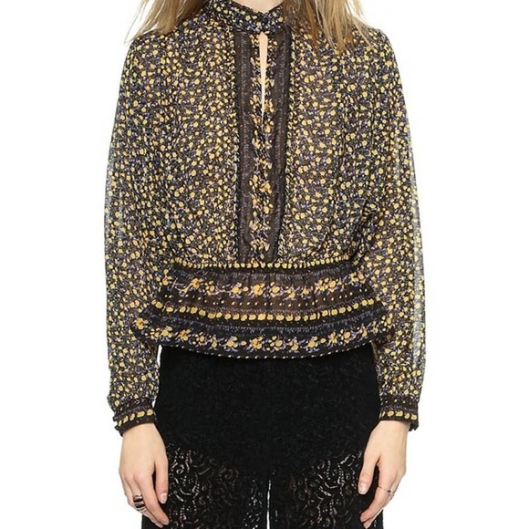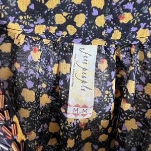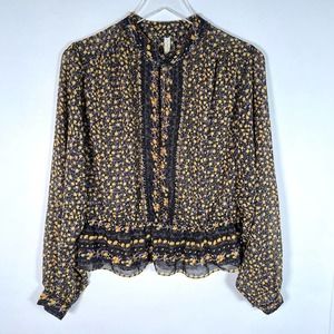Free People Women's If I Had You Top M Floral Beaded Embellished Peplum Blouse Black Yellow