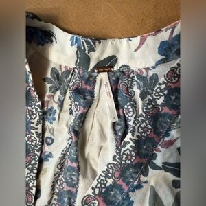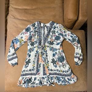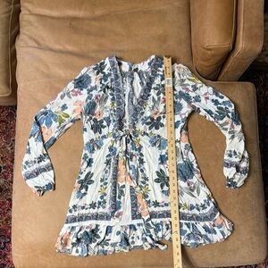 Free People Women's Ivory Floral Violet Hill Plunging Ruffle-Detail Top Size 8
