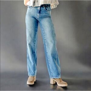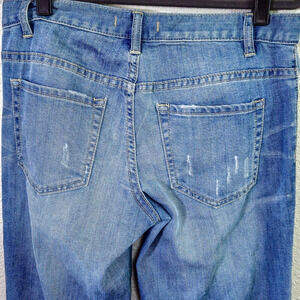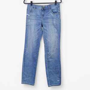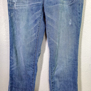 Free People women’s jeans in a soft medium wash denim with gentle fading and light distressing. Women’s size 26. Mid-rise fit with a skinny leg and stretch fabric that molds comfortably to the body. Classic five-pocket style with a zip fly and branded hardware. The wash reads clean and versatile, ideal for everyday wear.