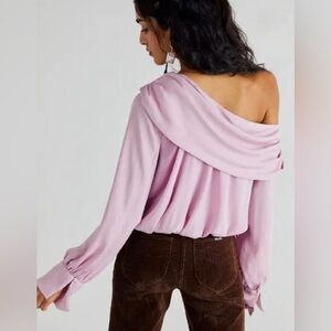 Stunning off shoulder top with loose long sleeves and foldover neckline. Size medium. About 21 inches from pit to pit laying flat. About 19 inches long. Excellent condition with no defects.