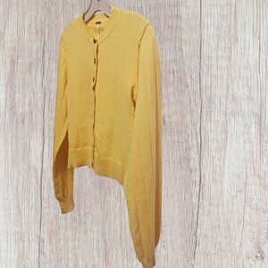 This Free People knit top is crafted from a soft polyester and nylon blend, offering a comfortable and stylish fit. Designed for a contemporary look, it is available in a pleasant yellow hue.has pink fibers is in great condition from smoke and pet free home.0431