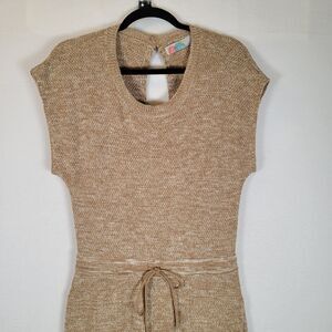 Free People Womens Sweater Knit Wide Leg Open Back Jumpsuit Size Small Brown Festival