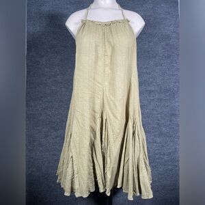 Free People Womens L Catching Rays Green Boho Fairy Raw Hem Halter Tunic Dress