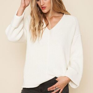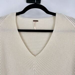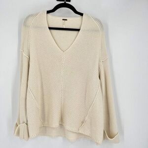 Free People Women's La Brea V-Neck Knitted Pullover Sweater Cream Size XS