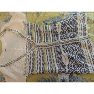Free People Women’s Large Cream Grey Fair Isle Wool Blend Annabelle Cardigan