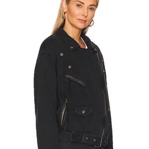 Free People Women's Large Jacket NWT the Rebel Soft Shell Moto Coat new black