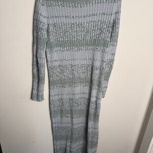 Free People Women's Large Long Cardigan Sweater Dress Button Up Knit Ribbed Blue