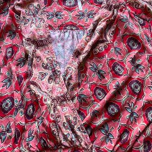 Free People Womens Large Red/Pink Floral Boho Vneck Blouse