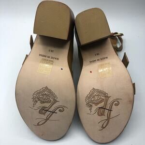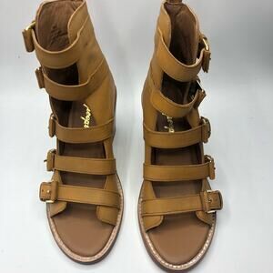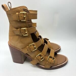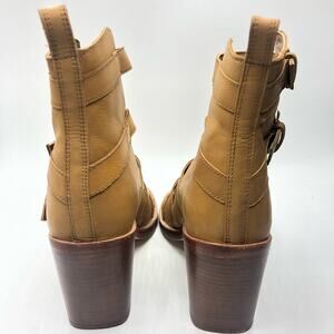 Free People Women’s Leather Buckle Up Baby Block Heels Tan Size 38.5 US 8.5