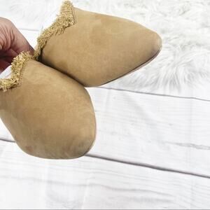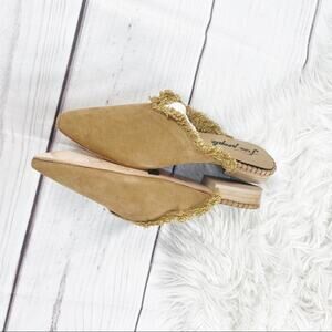 Free People Women's Leather Newport Flat with Fringe Detail in Tan Size 41