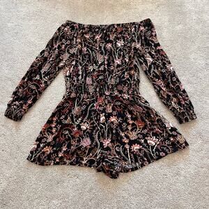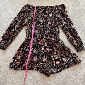 Free People Women's Longsleeve Romper with Shorts Black Floral Size M