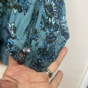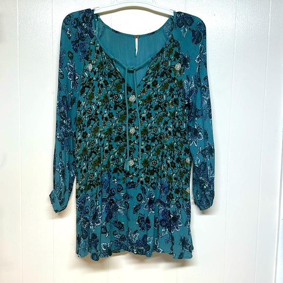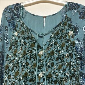 Free People Womens Dress XS Blue Lucky Loosie Floral Long Sleeve Mini Swing Flowy