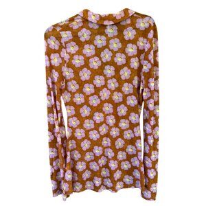 Free People Womens Lucky Shirtee Floral Long Sleeve Blouse Medium Rust/Purple