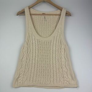 Free People Women’s M Cable Knit Cotton Sweater Tank Top Beige