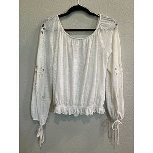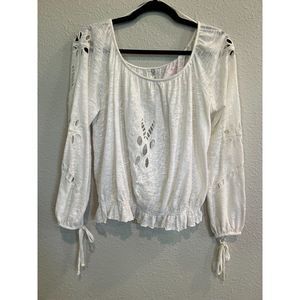 Free People Womens M Eyelet Peasant Boho Cutouts Tie Sleeve Top medium 418