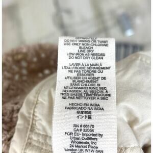 Free People “In Dreams” embellished harem pants in cream and blue with crochet, coin, bead and striped detailing. Lightweight, flowy, and boho-inspired with a relaxed, artistic silhouette. A standout FP piece that pairs effortlessly with tanks, tees, and layered festival or casual looks.