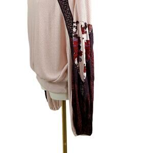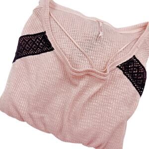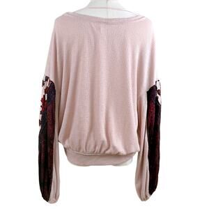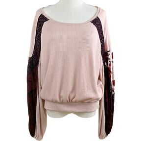 Free People Women's MED Casual Clash Rose Balloon Sleeve Thermal Waffle Top