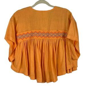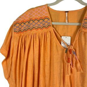 Free People Women’s Market Embroidered V-Neck Top Orange, Size M, NWT