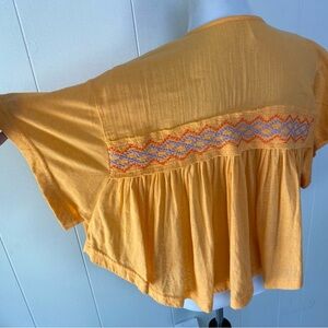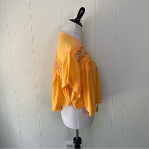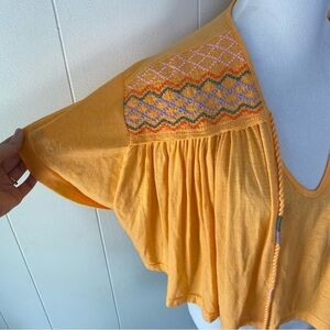 Free People Womens Market Embroidery Trim Tassel Tie V-Neck Tee Carrot Orange XS