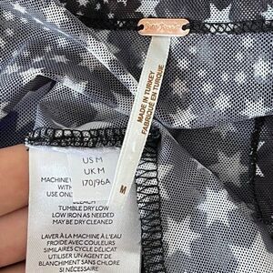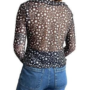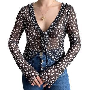 Free People Womens Marne Mesh Sheer Black White Star Cropped Wrap Top Sz M