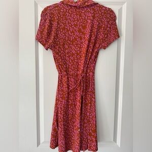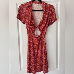 Collared neckline and adjustable ruching , Cutout at bust, Short sleeves, Leopard print