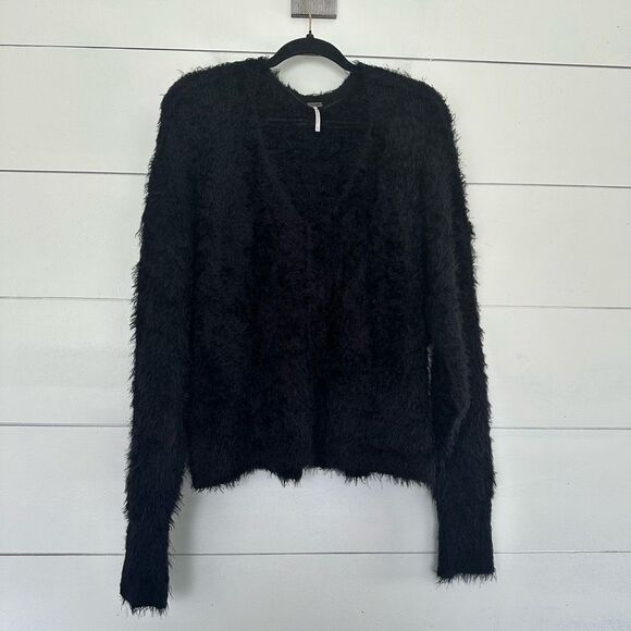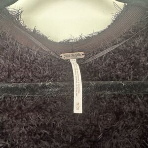 Free People Women’s Medium Icing Black Vneck Fuzzy Sweater New