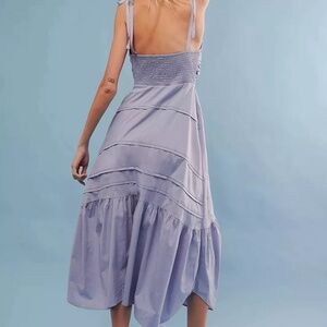 Free People Womens Medium Palma Midi Dress Blue Heron Lace Up Bodice Straps