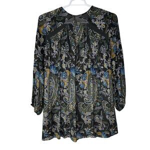 Free People Womens Medium Rain or Shine Mini Dress Tunic Bohemian Floral Paisley