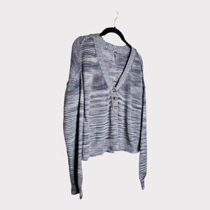 tags: Free People, Mercury pullover, henley sweater, marled knit, oversized sweater, slouchy fit, fall fashion, women’s small, 100% cotton