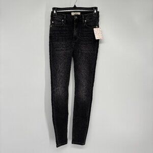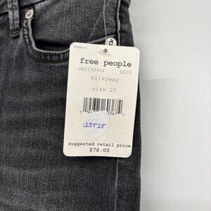 Free People Women's Mid Rise Slim Skinny Jeans Milkway Black Size 25 NWT, $78