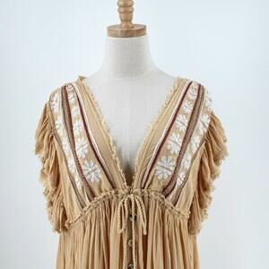 Free People Womens Midi Peasant Dress Medium Oversized Embroidered Boho Beach
