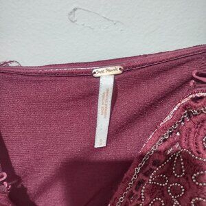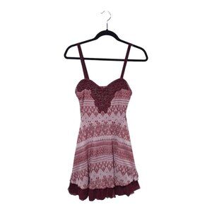Free People Women's Mini Strapless Dress Embellished Red Aztec Size Small