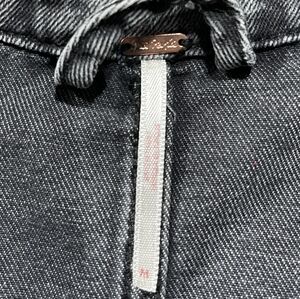 Free People Womens Moonchild Black Distressed Denim Shirt Jacket Size Medium