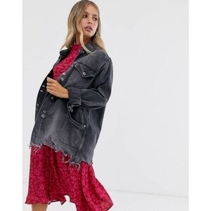 Excellent pre-owned condition Free People Womens Moonchild Black Distressed Denim Oversized Shirt Jacket Size Medium. 100% Cotton.