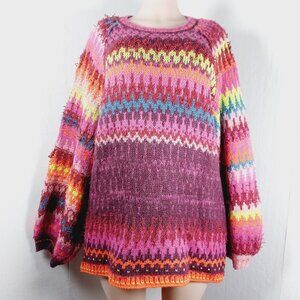 Free People Women's Multicolor Castle In The Sky Rainbow Oversized Sweater Sz S