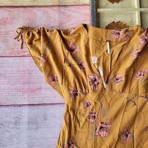 Free People Women's Mustard Combo Short Sleeve Drapey Melanie Dress Size…