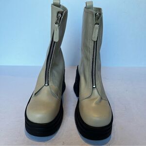 Free People Women's Myles Zip Front Leather Heeled Boots Ivory Size 9 Chunky